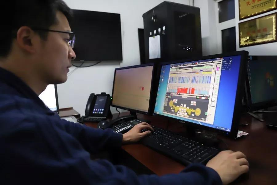 在智慧化礦山管理部技術(shù)人員的幫助下,一個(gè)月完成了井下監(jiān)控中心所有監(jiān)控設(shè)備和通訊設(shè)備、工作面電液控系統(tǒng)電源、環(huán)網(wǎng)設(shè)備、170臺(tái)電液控設(shè)備、500多根通訊纜線、800多個(gè)傳感器等設(shè)備的安裝與調(diào)試工作,實(shí)現(xiàn)地面遠(yuǎn)程采煤常態(tài)化。