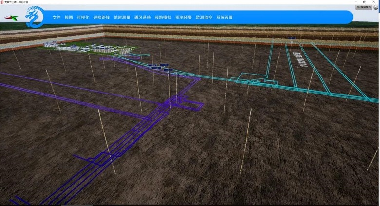 “這套地質(zhì)保障信息系統(tǒng)實現(xiàn)了高精度地質(zhì)模型與巷道幾何模型的建立,使得我們不下井就可以全面掌握礦井的最新采掘生產(chǎn)信息,它的巷道三維可視化、煤層三維可視化、三維井上下對照等技術(shù)應用極大的提高了工作效率,讓我們在地面上就可以進行礦井實時三維可視化管理與礦井三維漫游。”三維可視化能讓煤礦井下所有場景立體顯示在電腦屏幕上,這樣就可以讓工作人員更直觀、明了地了解、研判井下地質(zhì)信。
