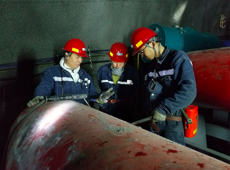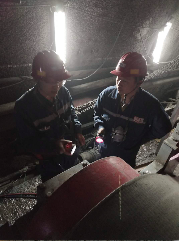 4、2月17日早上八點(diǎn),大年初二,該公司常務(wù)副總經(jīng)理雷亞軍已經(jīng)開始了一天的工作。為了對二號主斜井運(yùn)輸系統(tǒng)進(jìn)行改造,進(jìn)一步提高運(yùn)輸能力,給春節(jié)收假后的各項工作做好準(zhǔn)備,雷亞軍帶領(lǐng)工程技術(shù)人員現(xiàn)場查看情況,并對大家提出的方案逐一進(jìn)行深入探討。